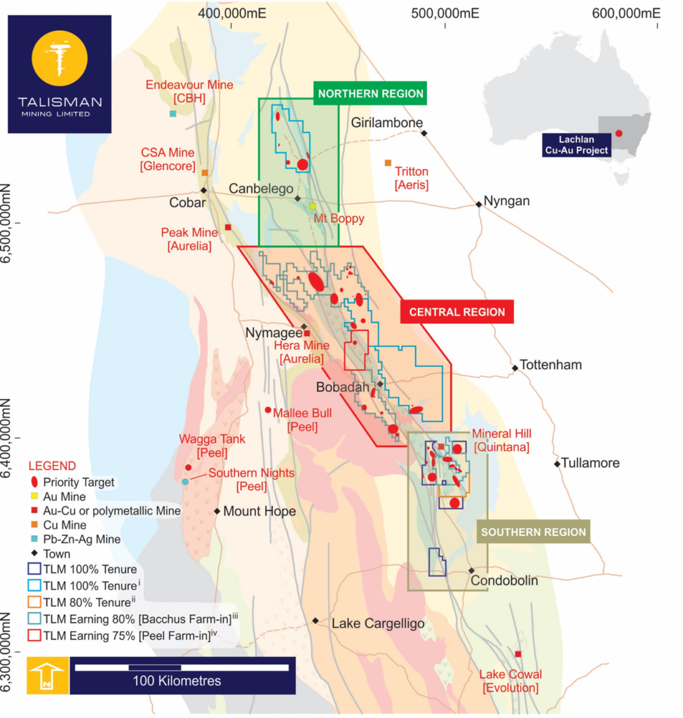 i. As previously announced to the ASX¹, Haverford Holdings Ltd (Haverford), a 100% owned subsidiary of Talisman, has entered into a Farm-In Agreement (Farm-in) with Bacchus Resources Pty Ltd (Bacchus) over certain Lachlan Cu-Au Project tenements.